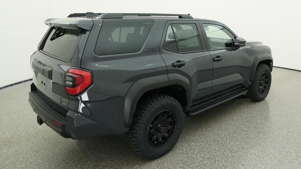 • Black honeycomb-style grille, mirror caps, door handles and overfenders color-keyed rear spoiler black 'TRD OFF ROAD' and '4RUNNER' badges